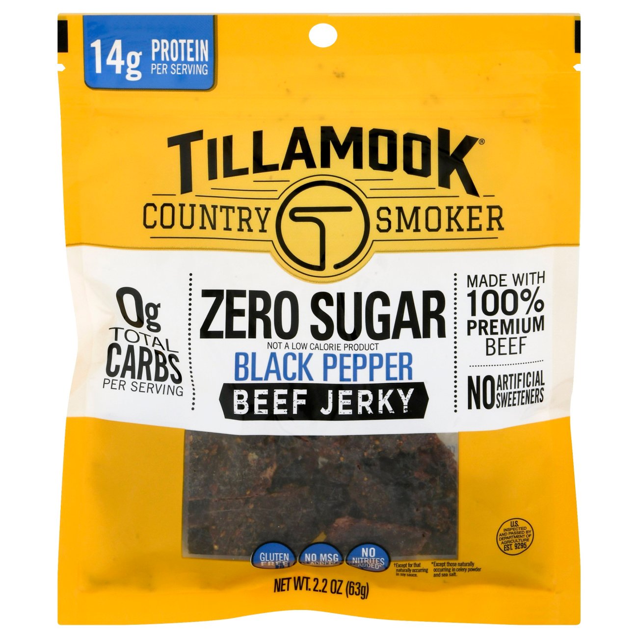 Up to 5 cash back Tillamook Country Smoker Beef Jerky Zero Sugar Original Bag Made with 100 premium USA beef. 21 2g Fat. For those looking for a great on-the-go snack grab a hearty piece of our Deli-Style Jerky made with 100 beef in our Peppered flavor that packs a.